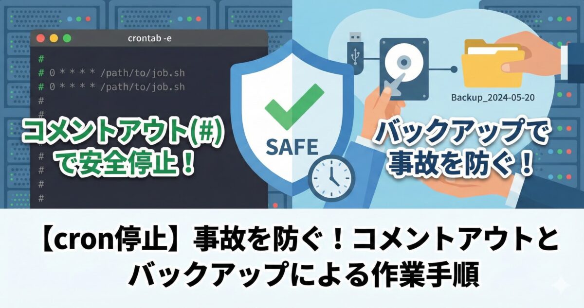 この記事では、そうした不安を解消するため、ファイル内容を直接編集する「コメントアウト(#追記)」による、より確実で安全な停止・再開手順と、ミスを防ぐためのバックアップ方法を解説します 。